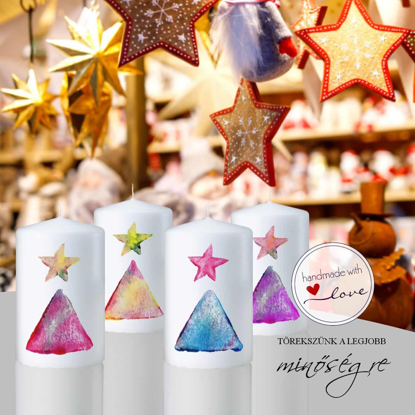 Színes karácsonyfák adventi gyertya szett